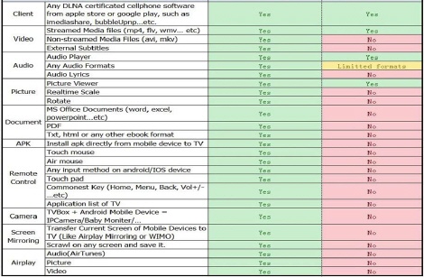 Vergleich Fernsehfee-Screen-Sharing mit DLNA